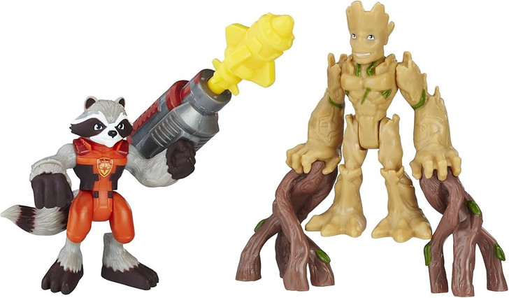 Little crime fighters can imagine saving the day with some of their favorite Marvel Super Heroes! Sized right for little hands, the Groot and Rocket Raccoon figures are always ready for an incredible adventure. These articulated figures make for Super Hero-sized fun in the Marvel universe! Also look for other Playskool Marvel Super Hero Adventure figure 2-packs. (Each 2-pack sold separately. Subject to availability.) Marvel products are produced by Hasbro under license from Marvel Characters B.V. Hasbro, Playskool, and all related terms are trademarks of Hasbro.