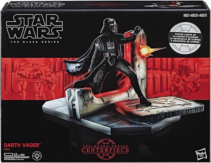 Reimagine key moments from the Star Wars universe with the Star Wars The Black Series Centerpiece collection! Each base features premium lights and sounds, and an iconic character captured in a moment in time like never before. Imagine Darth Vader storming aboard the Tantive IV in Star Wars: A New Hope with this Star Wars The Black Series Centerpiece Darth Vader, featuring Darth Vader wielding his lightsaber among the ruin of the besieged Rebel ship. With a premium base featuring lights and sounds that invites building out the iconic scene with more figures, vehicles, and accessories, Star Wars The Black Series Centerpiece Darth Vader truly serves as the centerpiece of any fan’s treasured display. Additional products each sold separately.