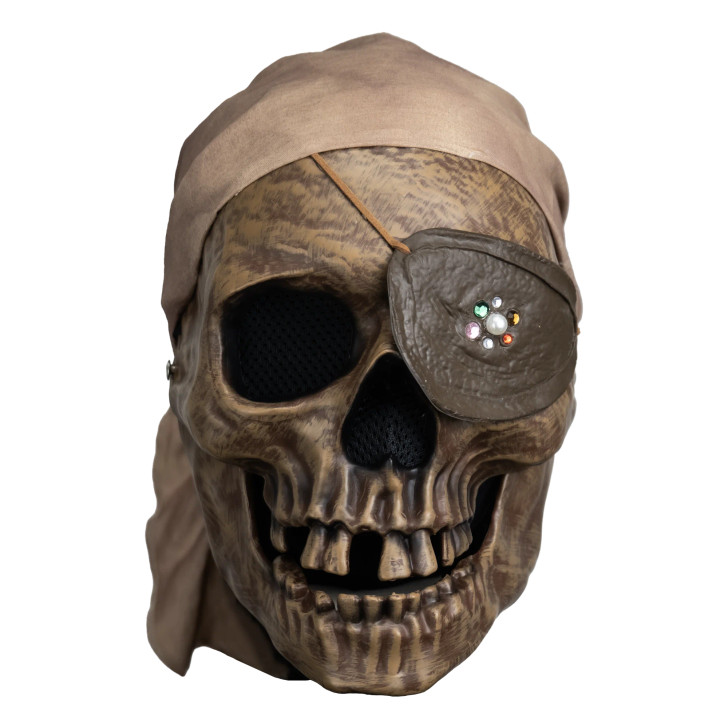 This deluxe injection-molded mask captures One-Eyed Willy’s skeletal features with crisp dimensional detail and film-inspired paint work. The mask includes a fabric bandana permanently attached to the head for added realism, as well as a latex eye patch.